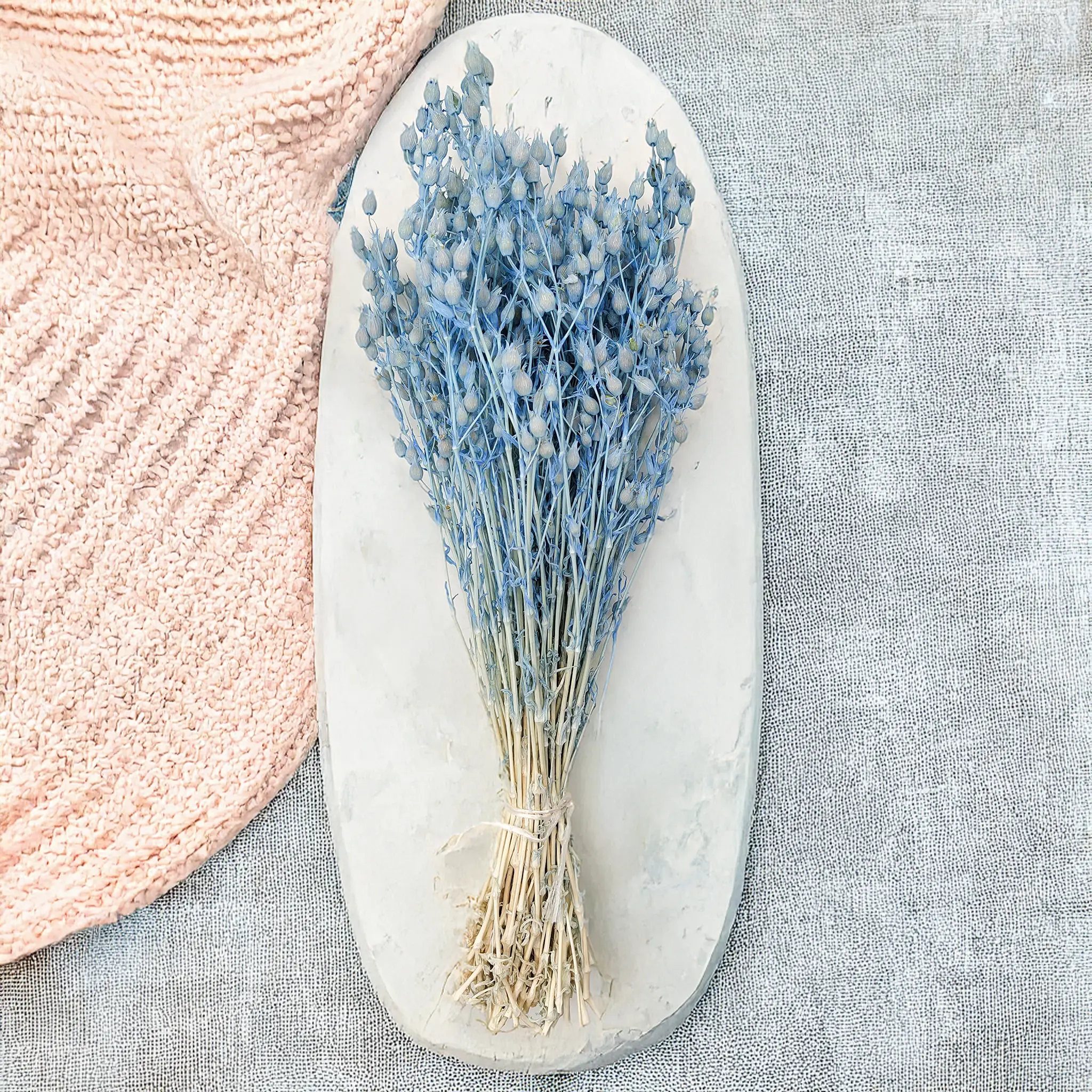 Fleur séchée et teintée – longue durée, sans entretien. Parfaitement assortie aux tons sable, blanc, gris ou pastel.