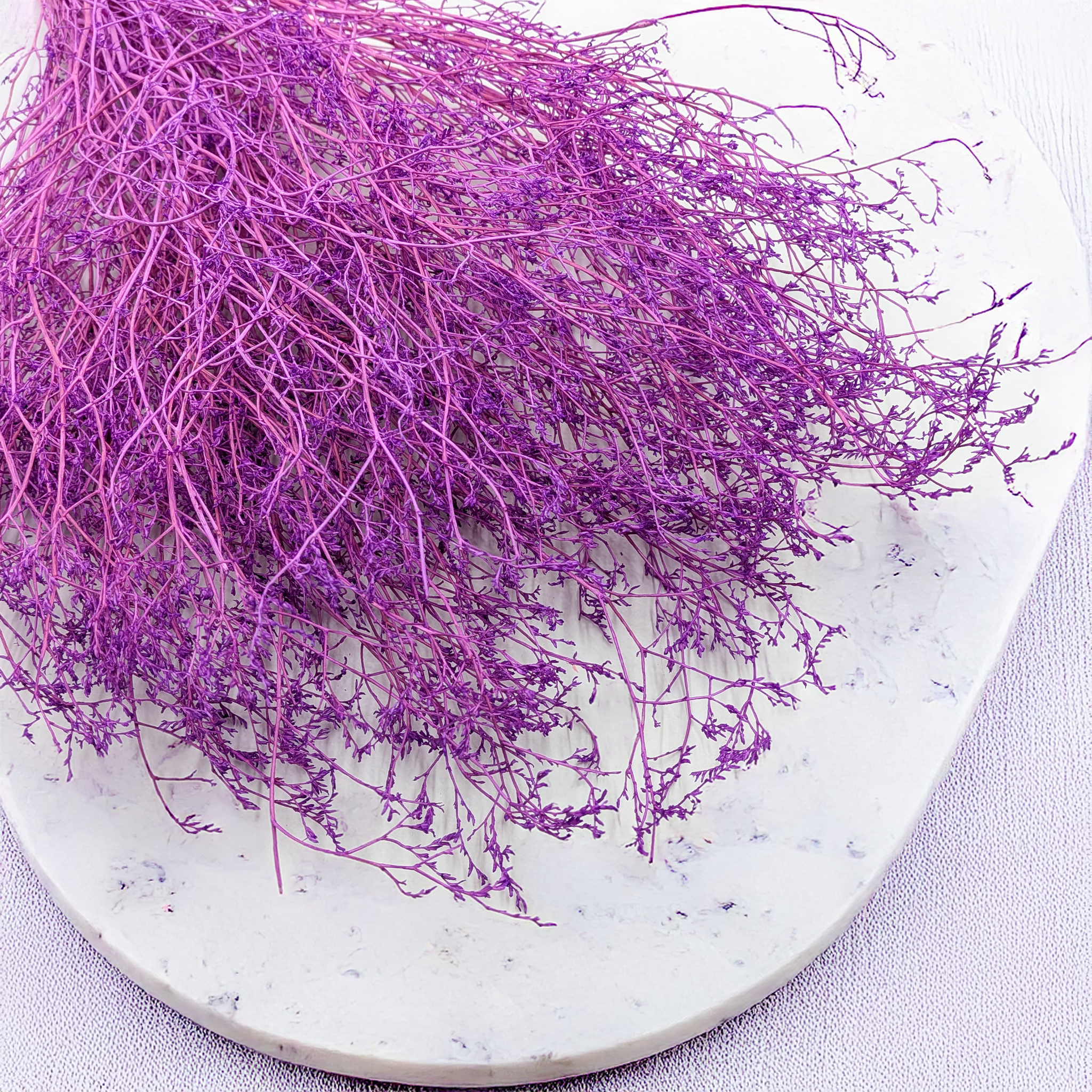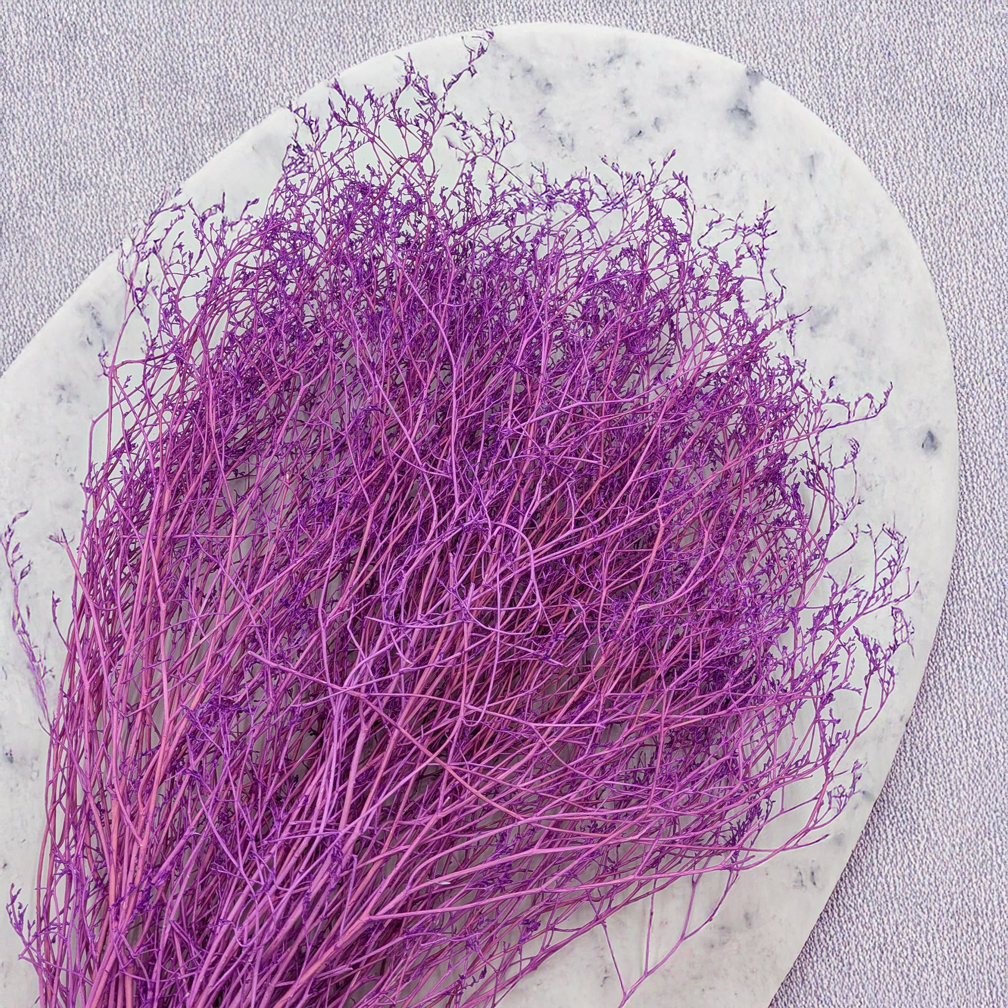 Le limonium à larges feuilles séché dans une teinte lilas est un accent décoratif élégant et subtil, alliant la douceur du violet pastel à la légèreté naturelle des fleurs séchées. Sa structure aérienne et ramifiée apporte harmonie et profondeur aux compositions, tandis que la couleur lilas évoque le calme, la créativité et une esthétique romantique raffinée.
