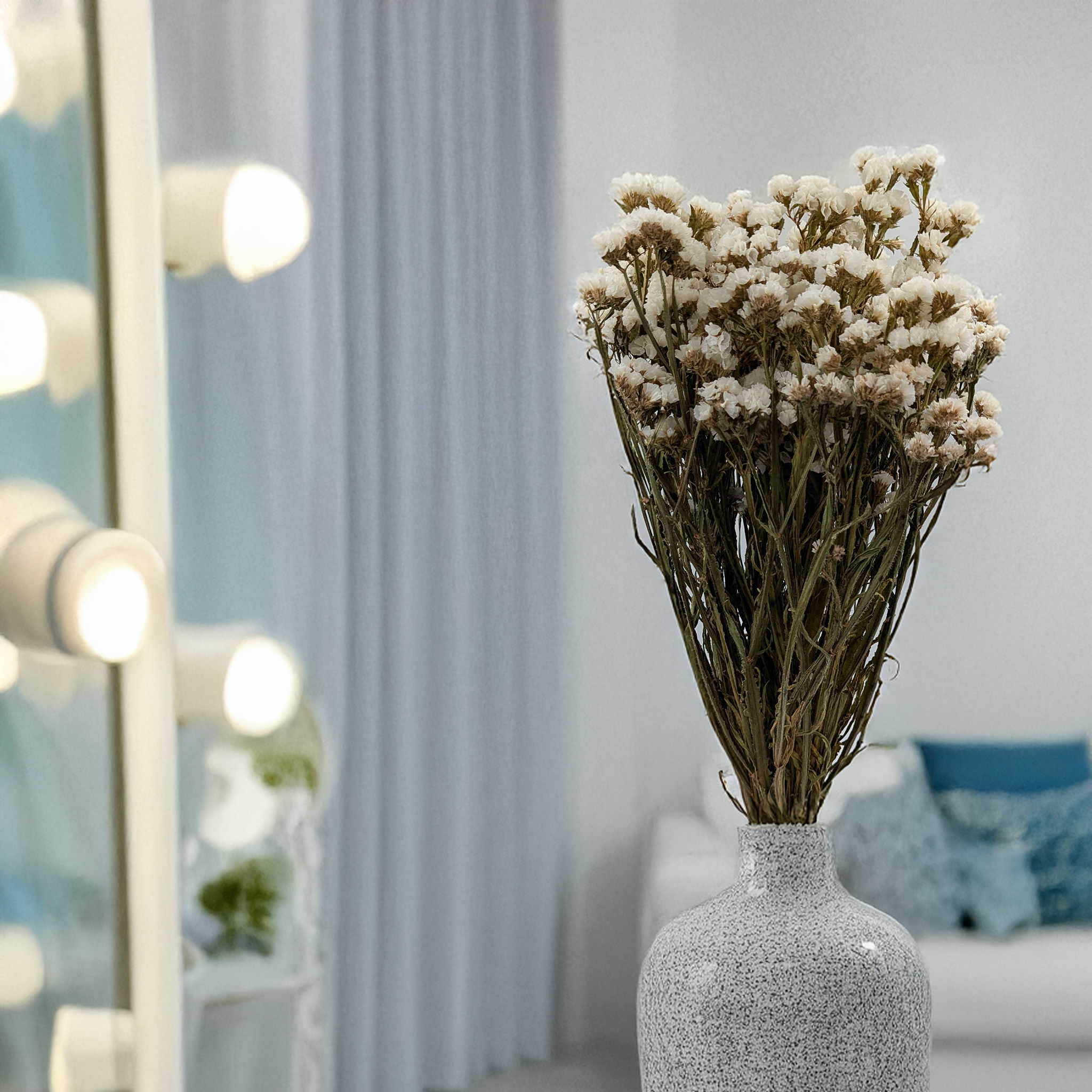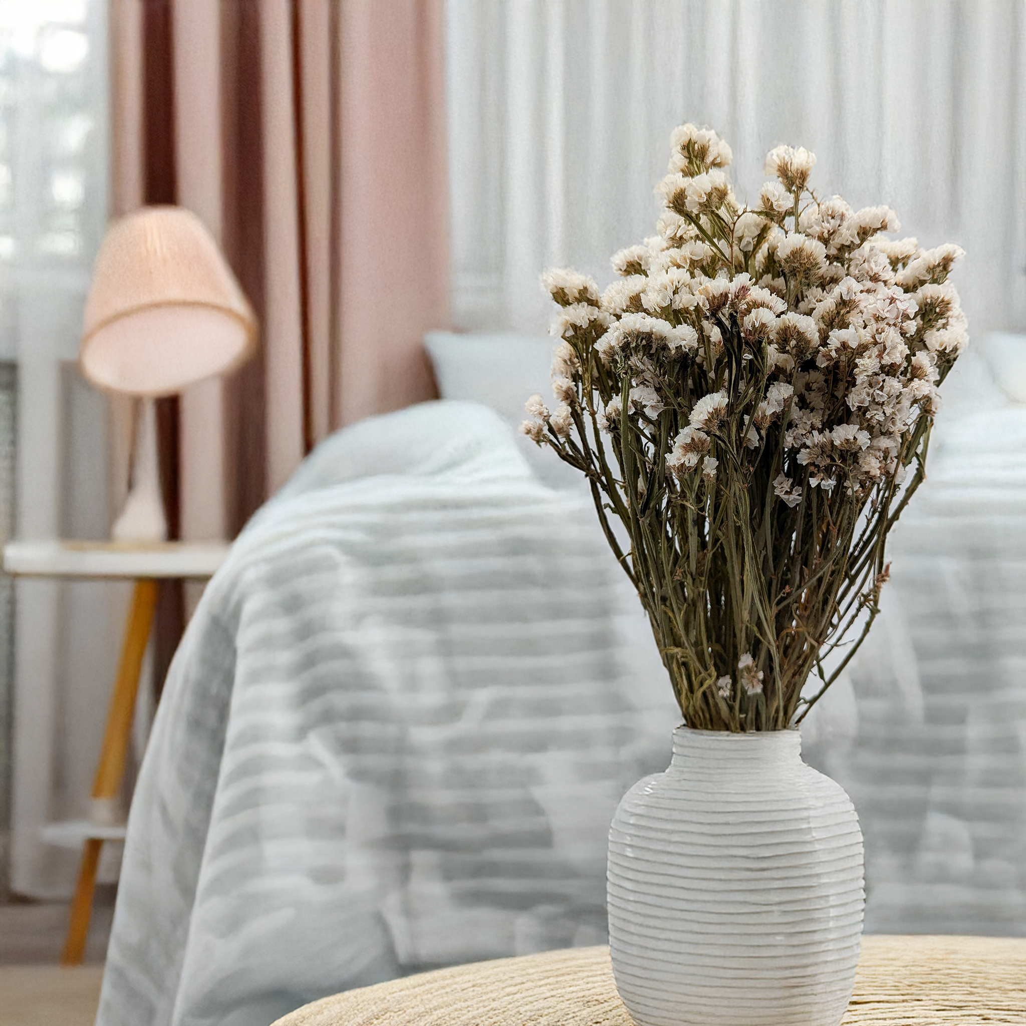 Le statice séché est un ajout décoratif esthétique et durable pour vos aménagements intérieurs et compositions florales. Sa teinte blanche éclatante apporte une touche raffinée et lumineuse à tout espace. Séché naturellement, il conserve sa forme et sa couleur pendant longtemps, assurant une décoration durable.