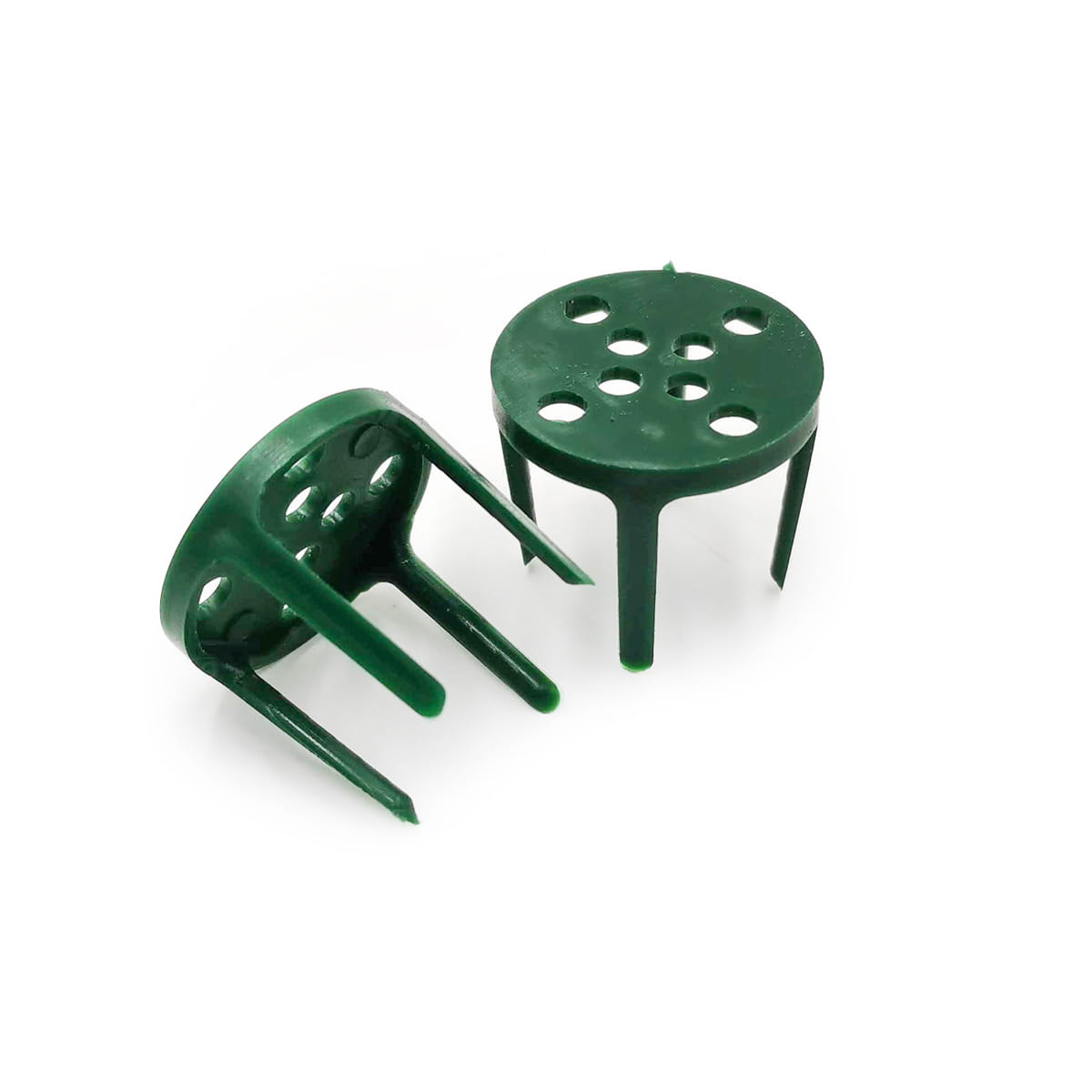 Chaque support est composé d'une base en plastique perforée et de piques verticales qui s'enfoncent dans la mousse pour la maintenir en place. Cela évite l'utilisation de colle ou d'autres moyens de fixation.